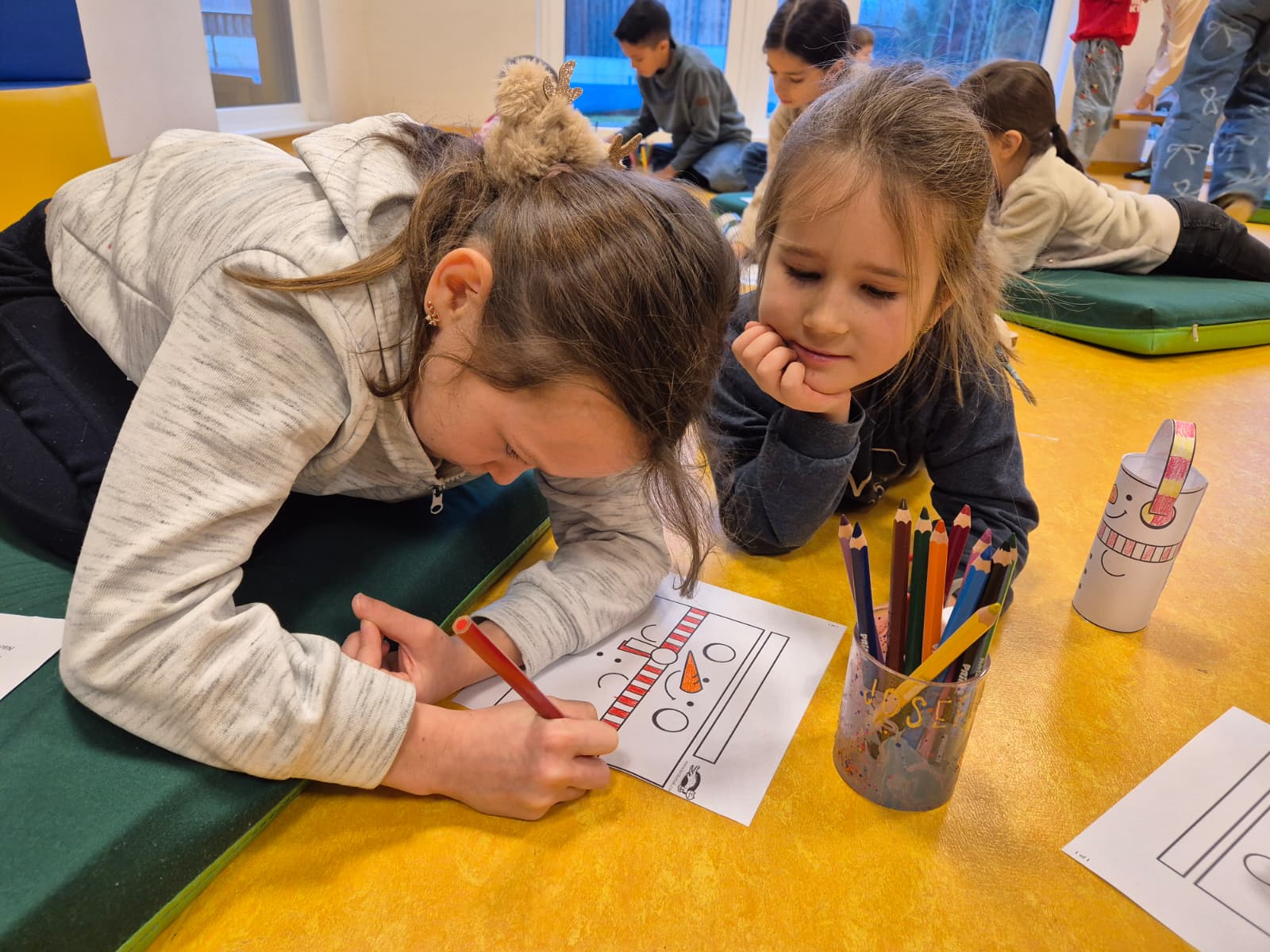 Vor Weihnachten durfte die 3. Klasse noch die Schulanfänger im Kindergarten besuchen. Nachdem wir eine Geschichte über einen Schneemann vorgelesen haben, bastelten wir gemeinsam noch kleine Schneemänner, die nun unsere Fensterbänke schmücken.